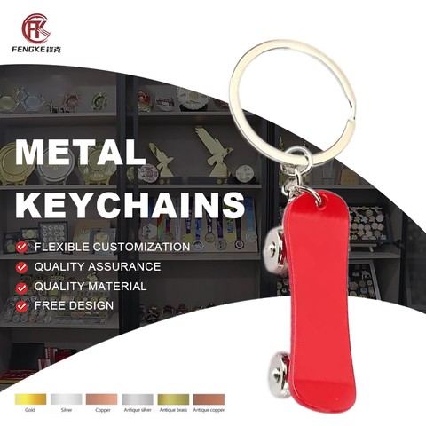 พวงกุญแจสกู๊ตเตอร์เคลือบแข็งแบบนิ่มสำหรับสเก็ตบอร์ด3D โลโก้ตามสั่งแฟชั่นวินเทจพวงกุญแจโลหะสังกะสีของที่ระลึก