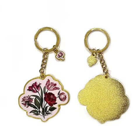 พวงกุญแจโลหะเคลือบแบบสั่งทำรูปทรงดอกไม้จากผู้ผลิตในประเทศจีนสำหรับเป็นของที่ระลึกและของขวัญ