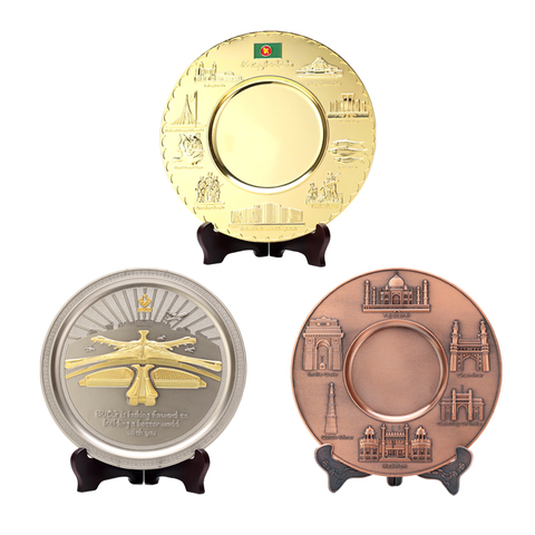 Индивидуальные золотые серебряные античные бронзовые металлические тисненые логотипы 3d награда Бангладеш Индия Испания сувенирная тарелка